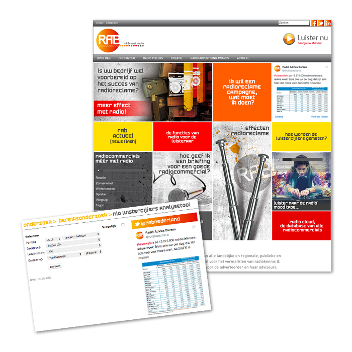 RAB bestaat alweer ruim 10 jaar. Dé marketingorganisatie van alle landelijke en regionale, publieke en commerciele radiostations en staat voor het vermarkten van radiokennis en inspiratie van nu en van morgen voor de adverteerder en haar adviseur.